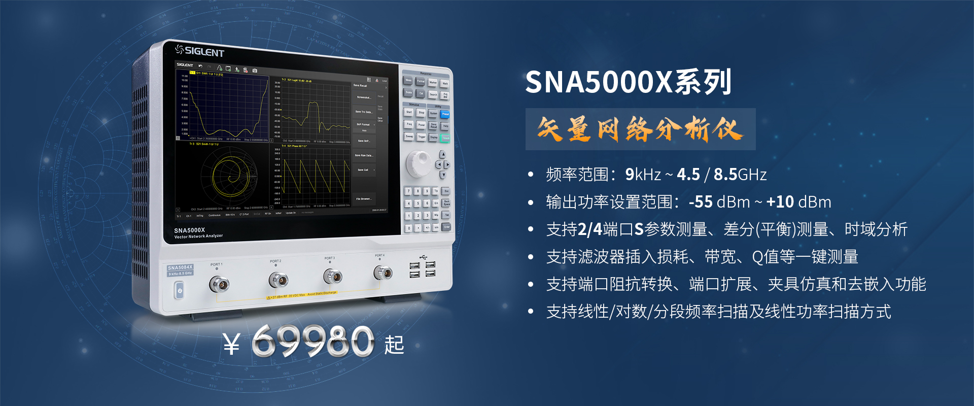 SNA5000X系列矢量網(wǎng)絡(luò)分析儀(Vector Network Analyzer),其測(cè)量頻率高達(dá)8.5GHz,支持4端口S參數(shù)測(cè)量,差分(平衡)測(cè)量,時(shí)域測(cè)...